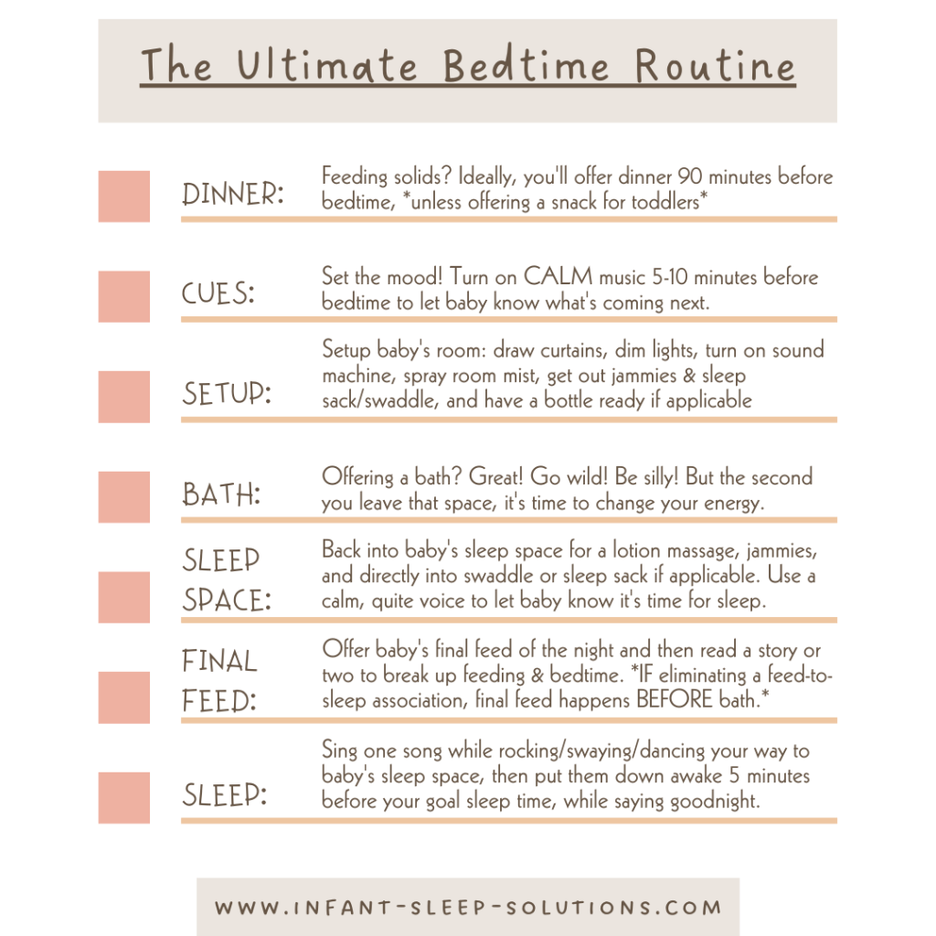 So! Please do print out this bedtime routine and post it on your baby’s door so anyone helping out can stay consistent with your new routine. The more consistency across the board, the better. You’ve got this, fam!
